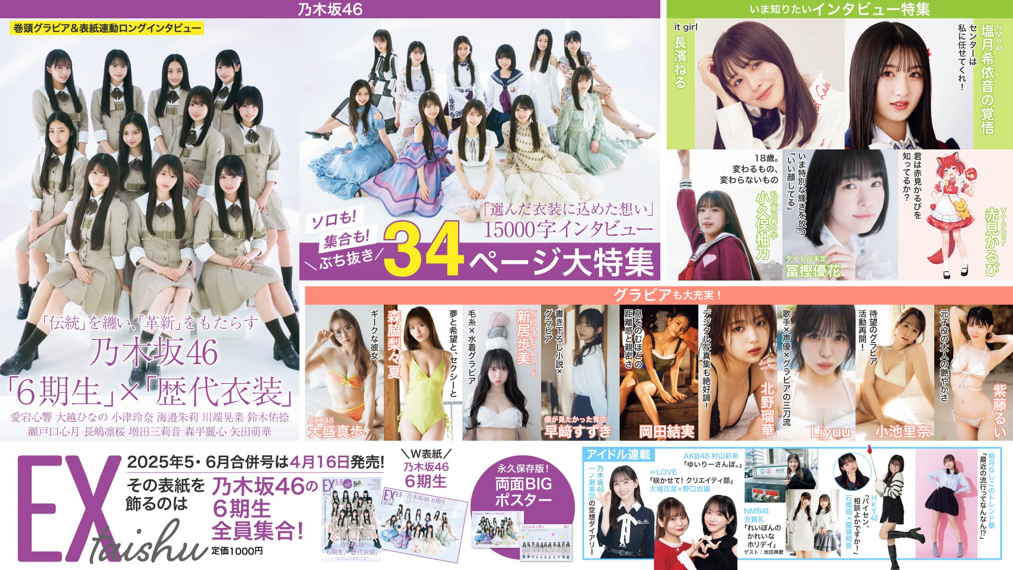 本日4月16日(水)発売の「EX大衆 2025年 5・6月 合併号」に、AKB48 大盛真歩さん、北野瑠華さんのグラビアが掲載されています。
