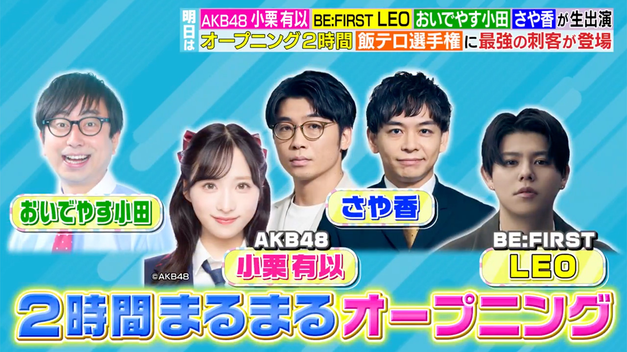 スタジオゲスト:おいでやす小田 / 小栗有以(AKB48) / さや香(新山・石井) / LEO(BE:FIRST)