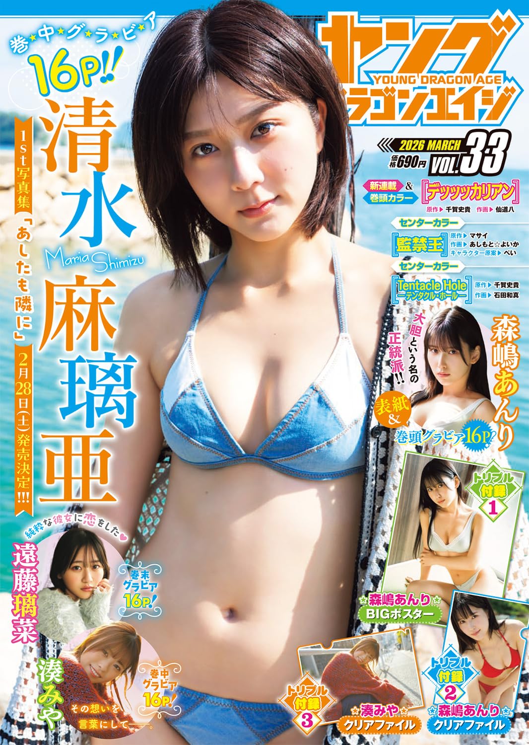2月26日(木)発売の「ヤングドラゴンエイジ VOL.33」に清水麻璃亜さんのグラビアが掲載されています。