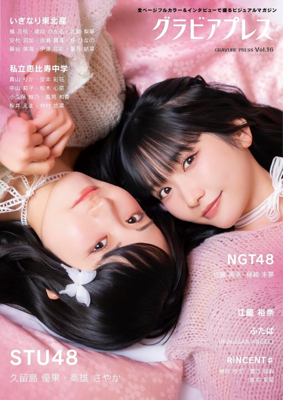 4月17日(金)発売の「グラビアプレス Vol.16」のW表紙はSTU48 久留島優果さん&高雄さやかさん、NGT48 佐藤海里さん&藤崎未夢さんです。