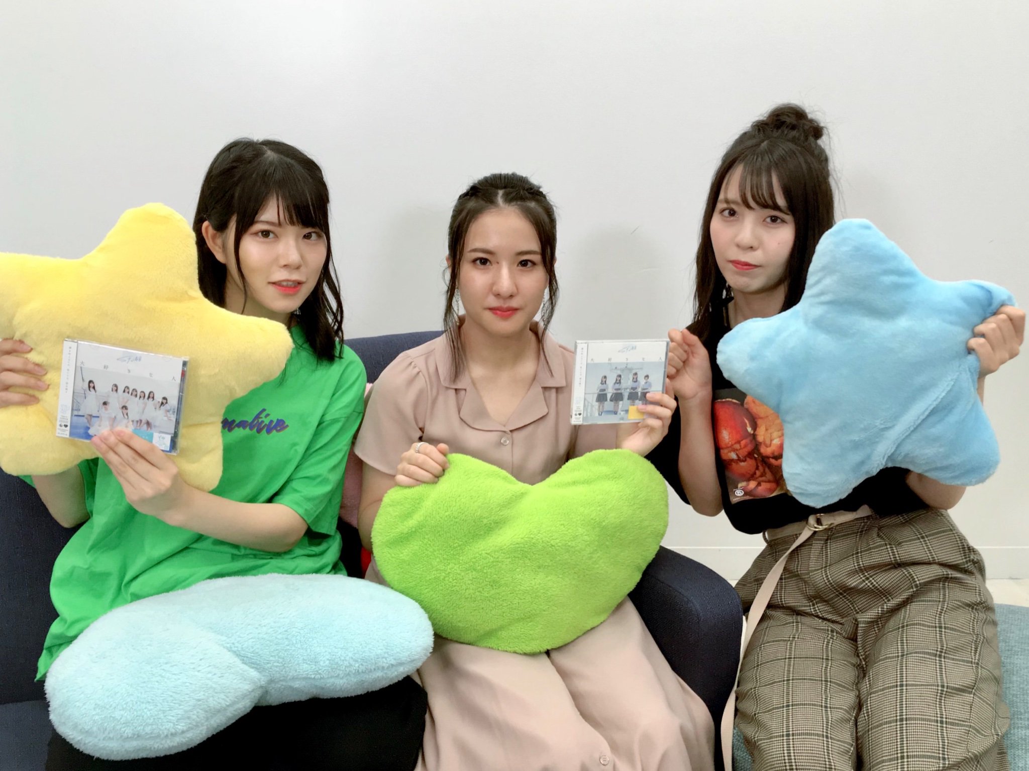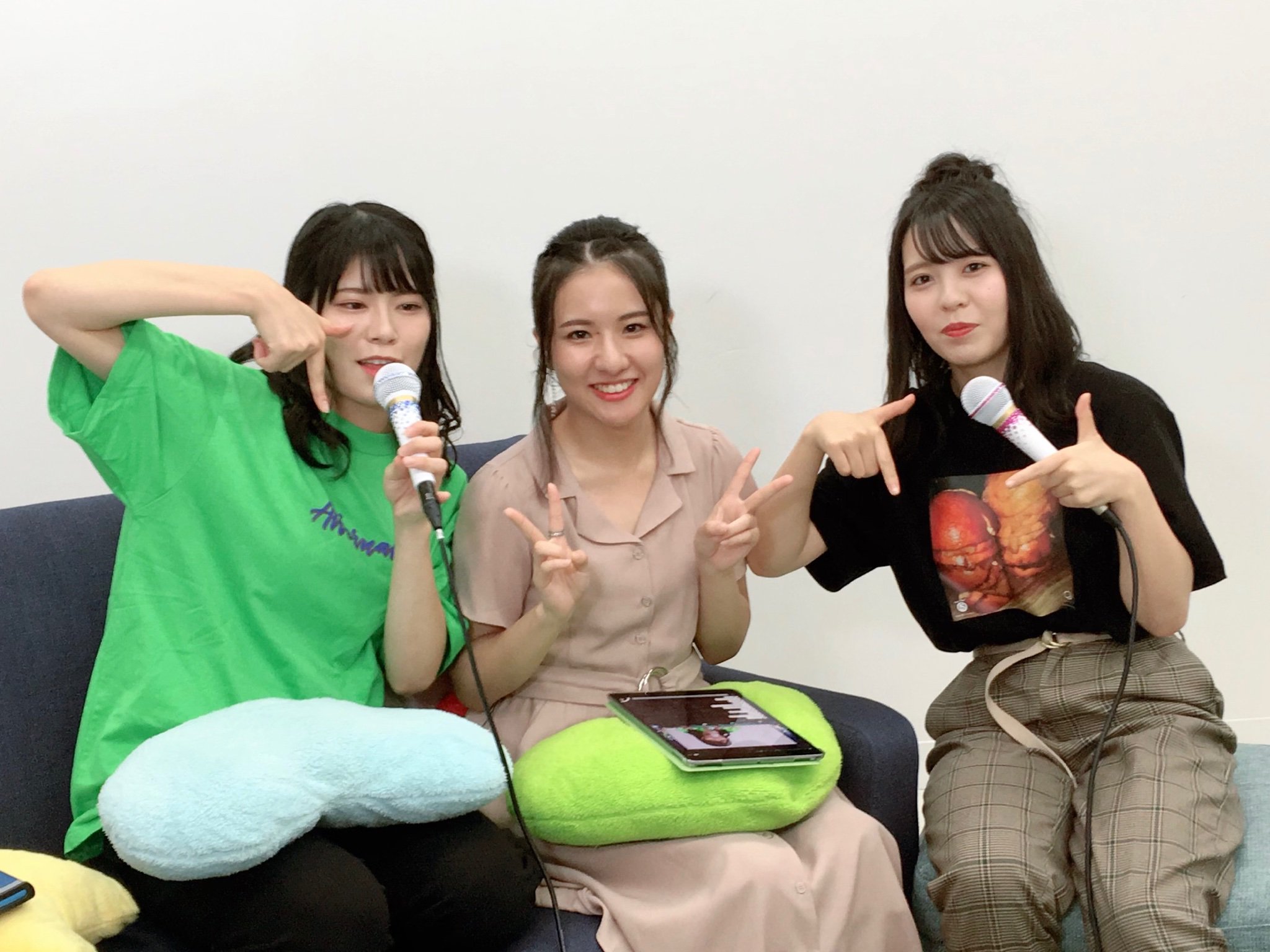 本日8月9日(金)配信の「猫舌SHOWROOM 指カラ」から、STU48の矢野帆夏さん、三島遥香さん、谷口茉妃菜さんのオフショットです。