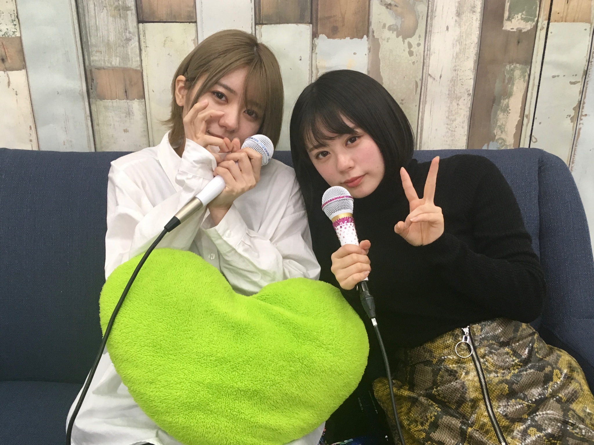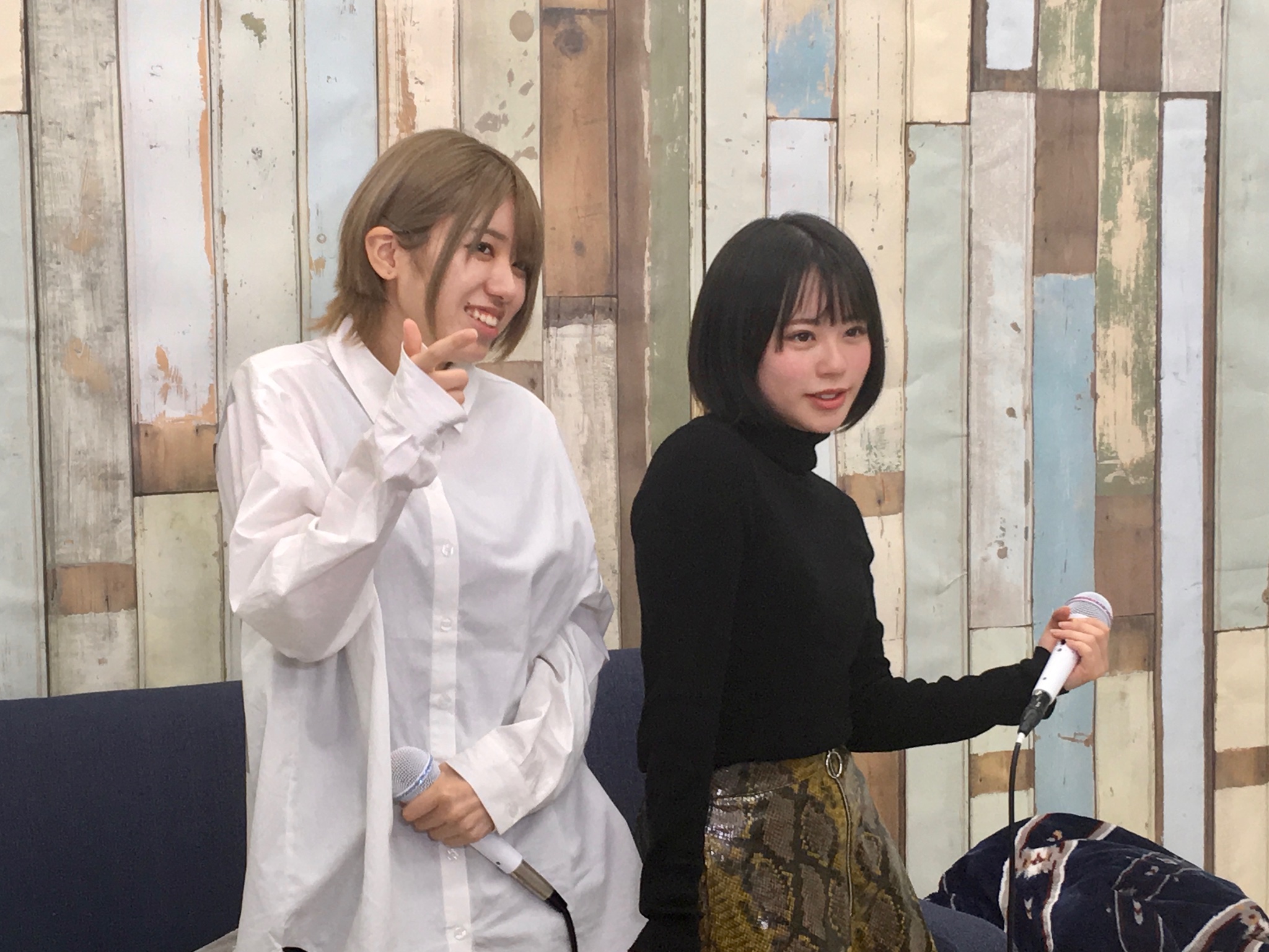 1月10日(金)配信の「猫舌SHOWROOM 指カラ」より、AKB48 チーム8の大西桃香さんと濵咲友菜さんのオフショットです。